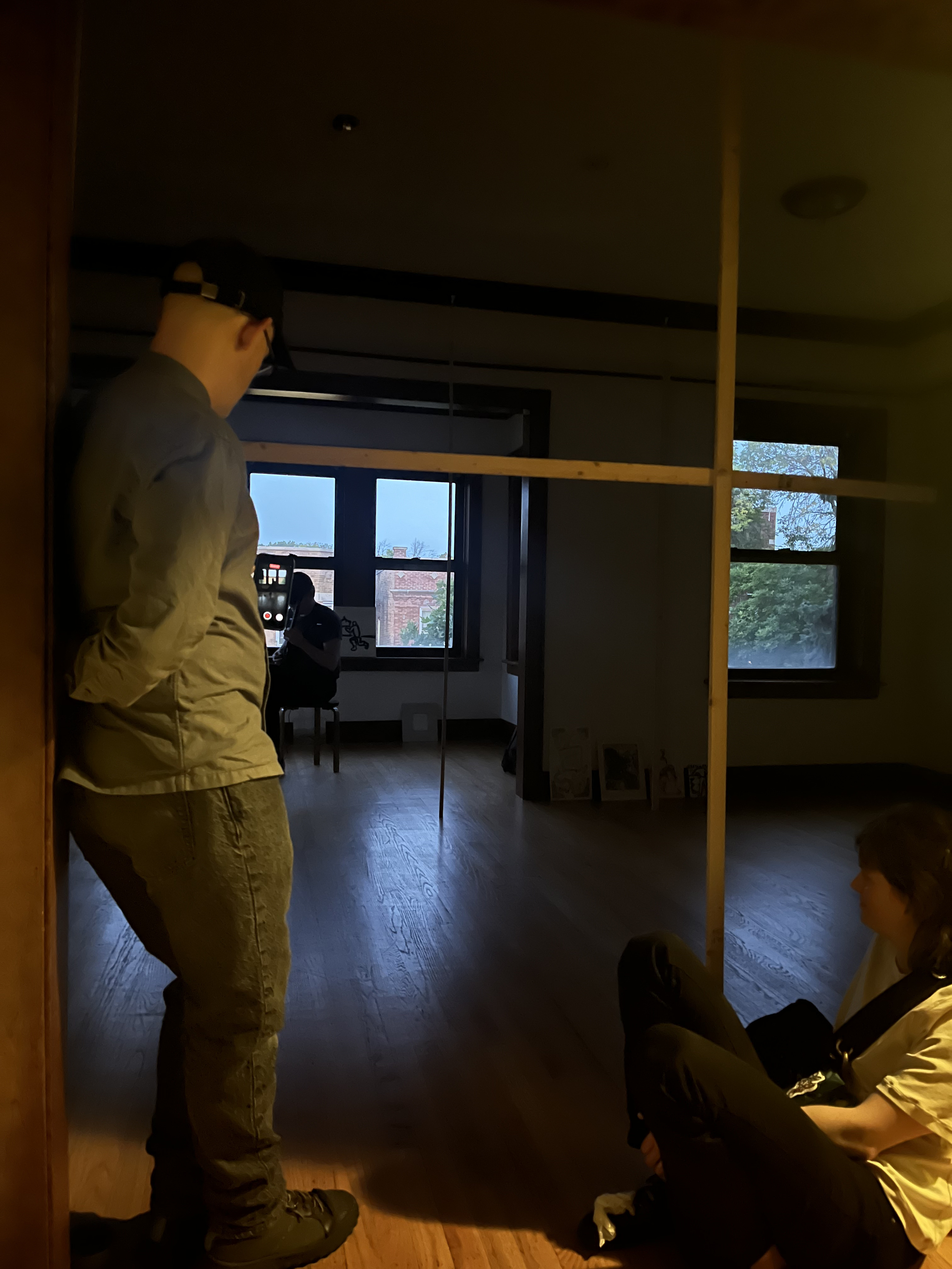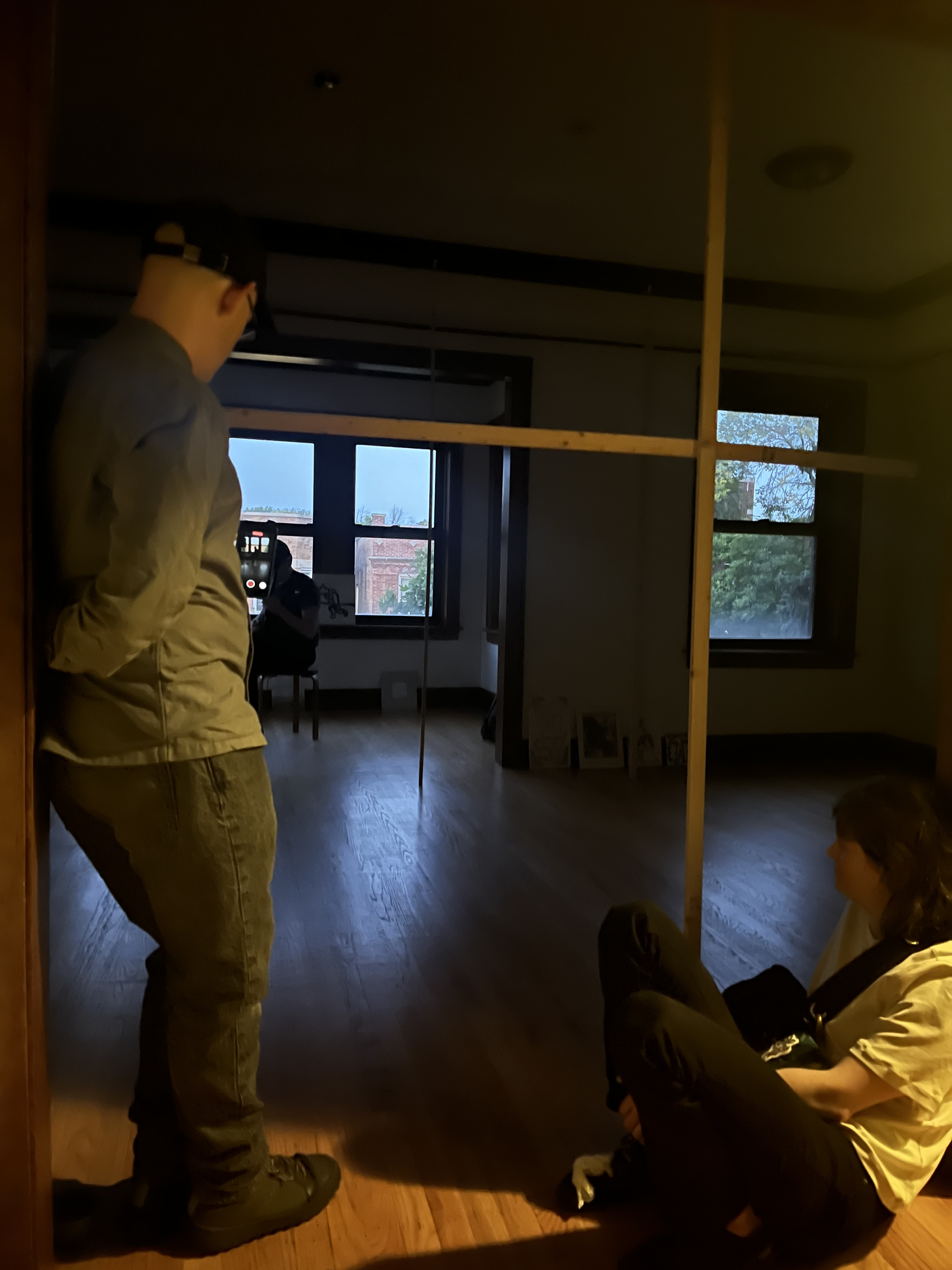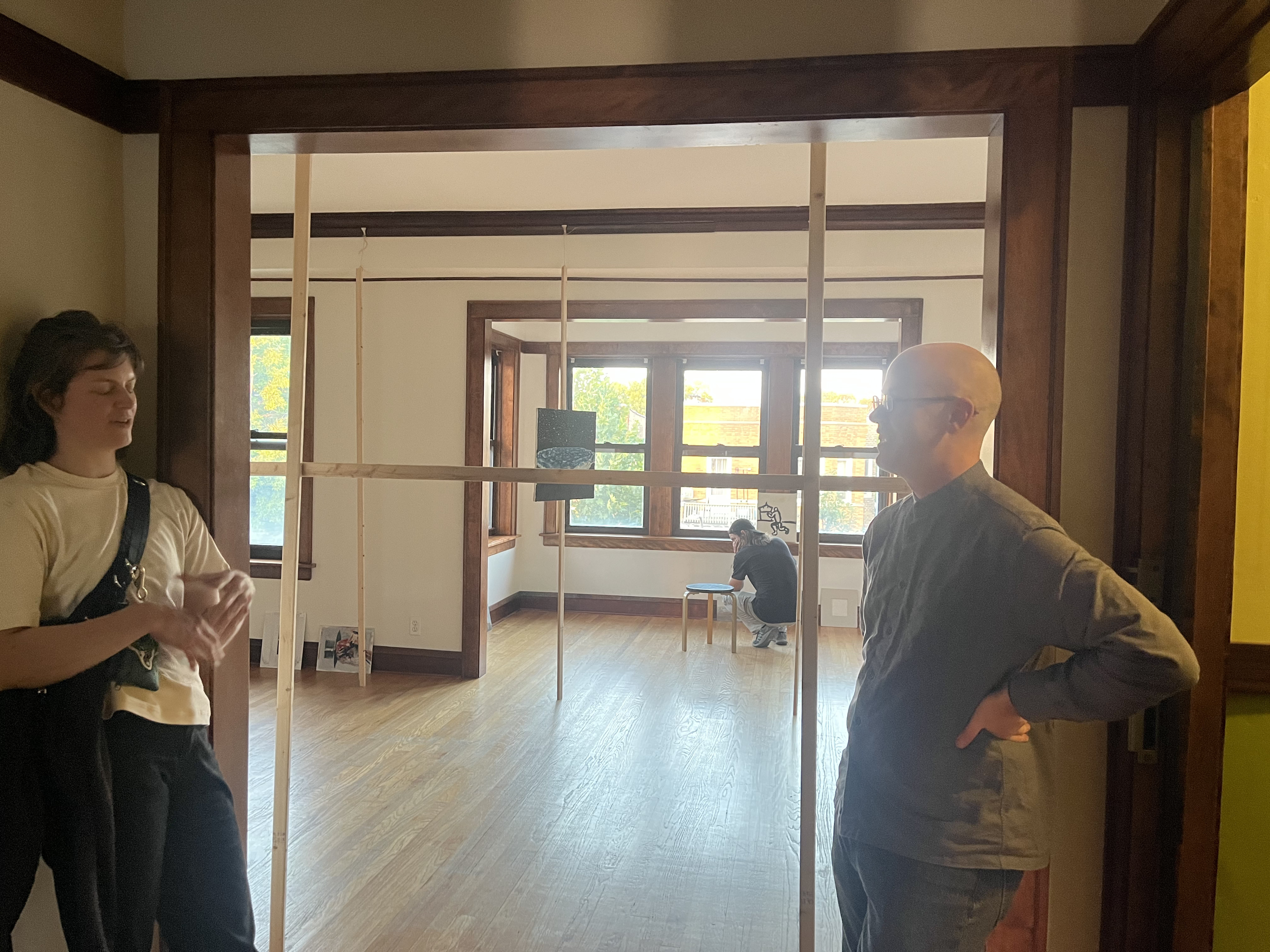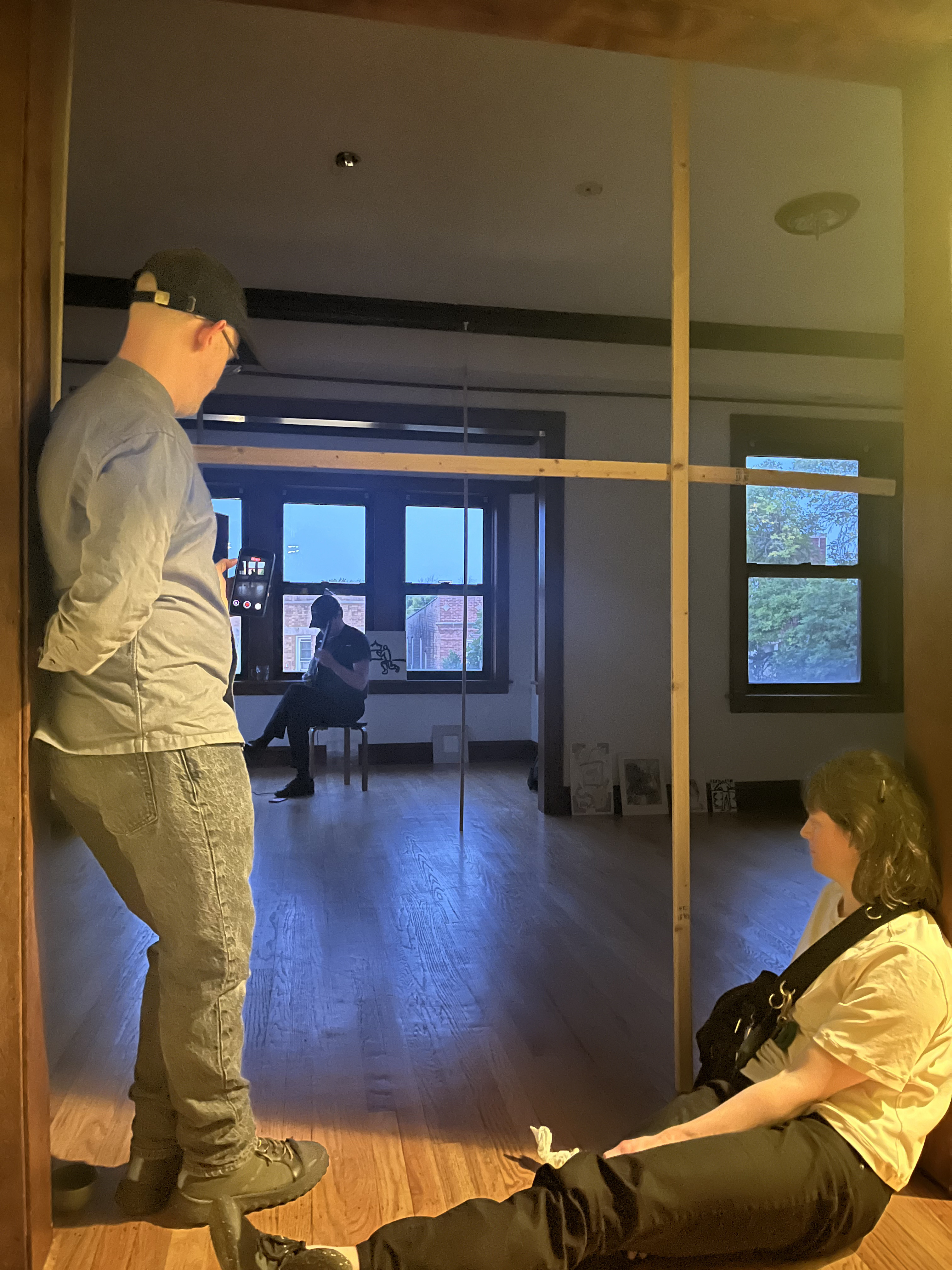i started apartment.gallery to show my dad, who had a self-described blip of a painting career in the 80's -- he glued giant paintings to the walls of new york city -- and has since toiled in obscurity. in the 90's he would come home exhausted and go right to bed. after dinner he would get high and go downstairs to paint. once, either on his way down or having just returned, he confided in me his thoughts on painting. he said it was like leaping off a cliff, flailing, desperate, grabbing at anything and hoping it holds. he died on august 20, 2025. this show is arranged according to a sentimental hierarchy: my mom and me here, my friends there, and my dad in between.