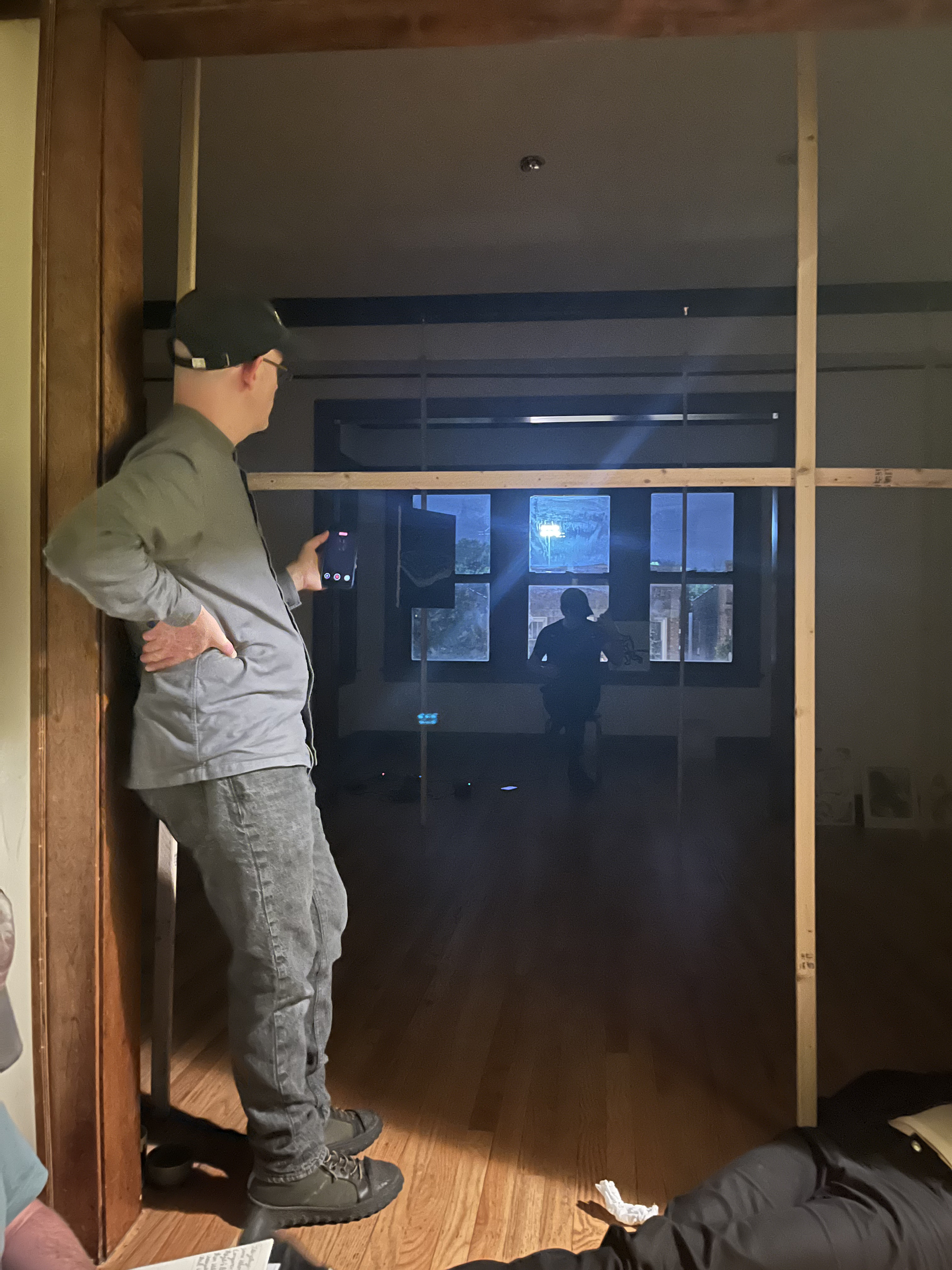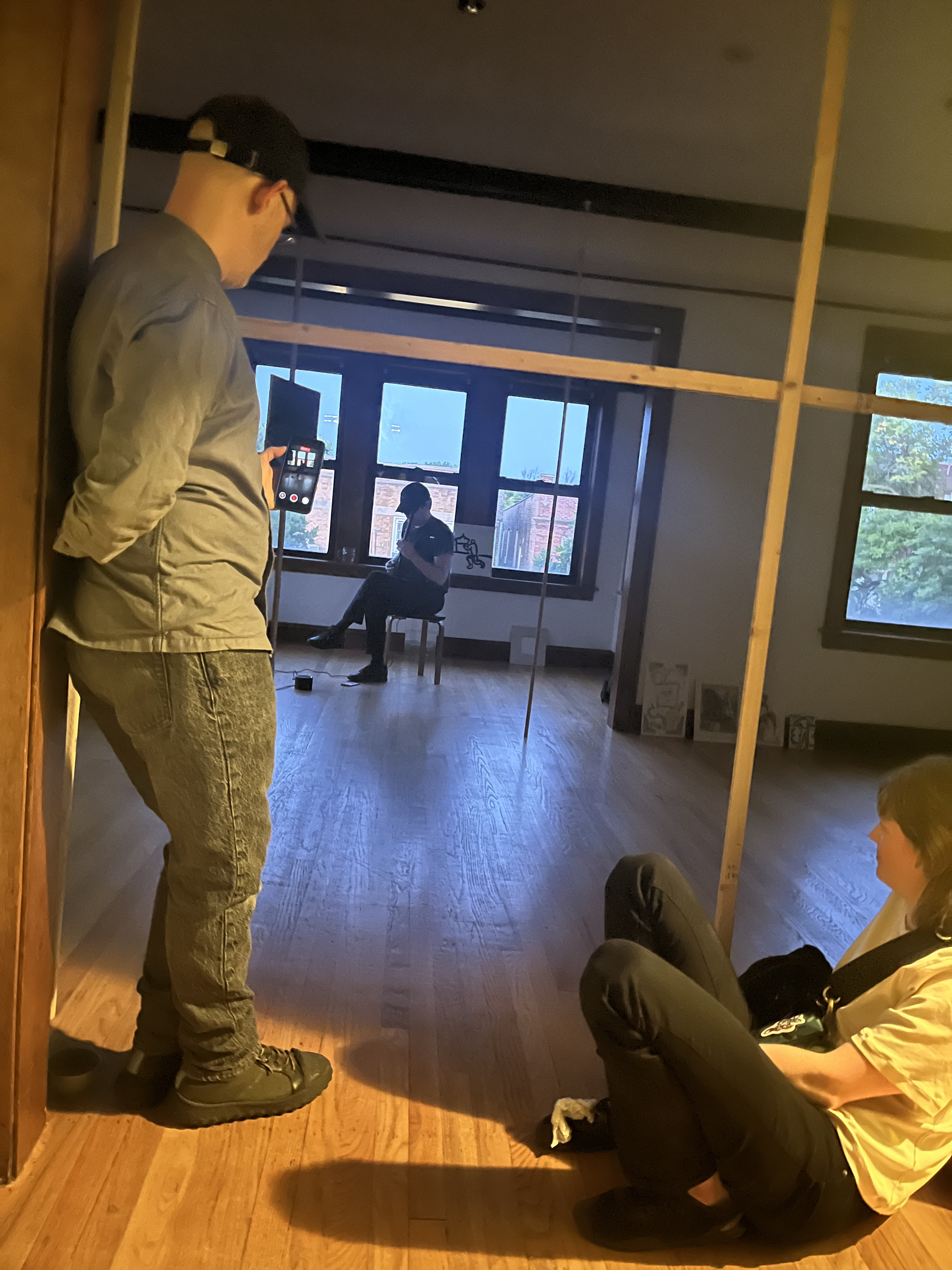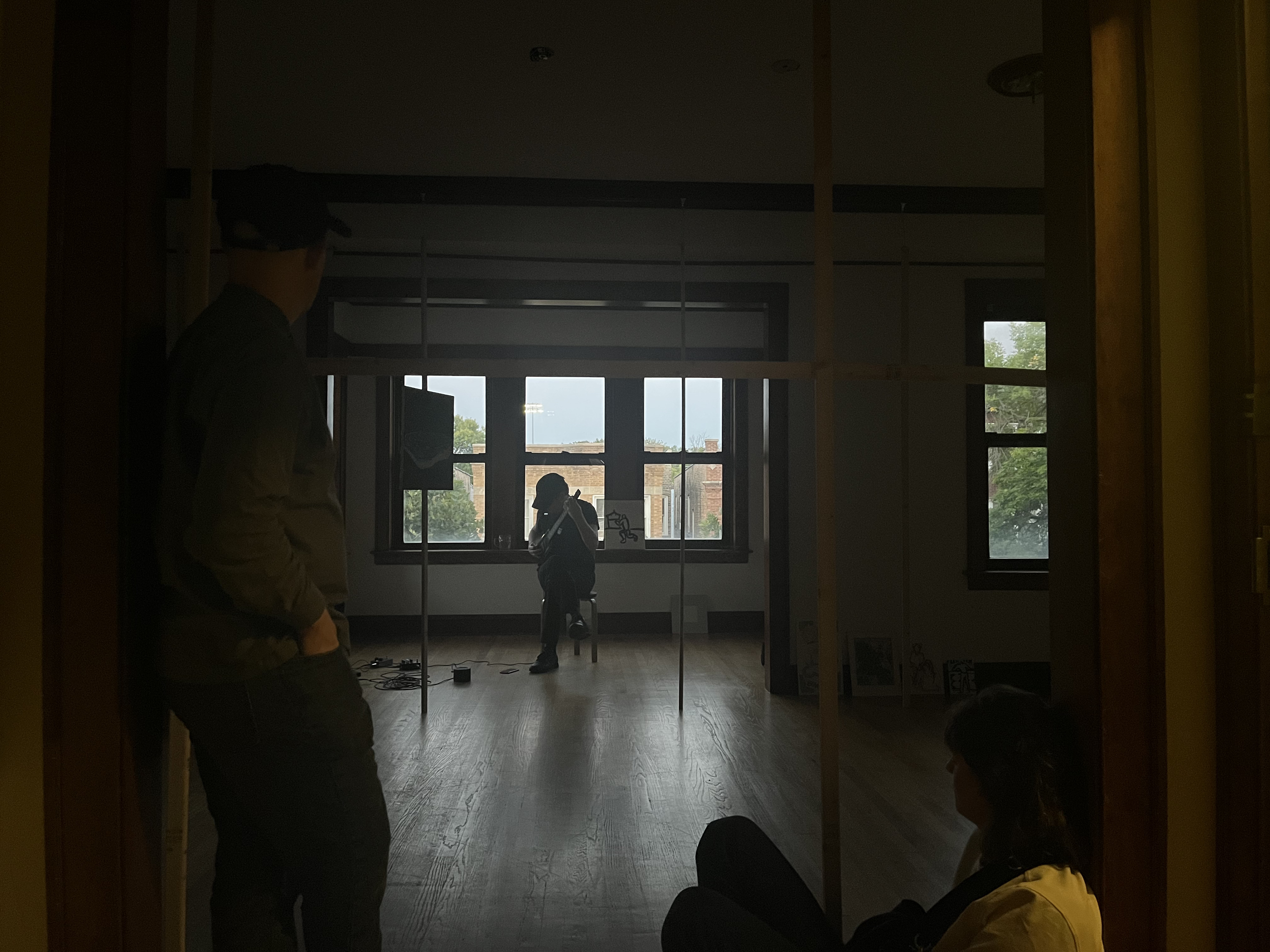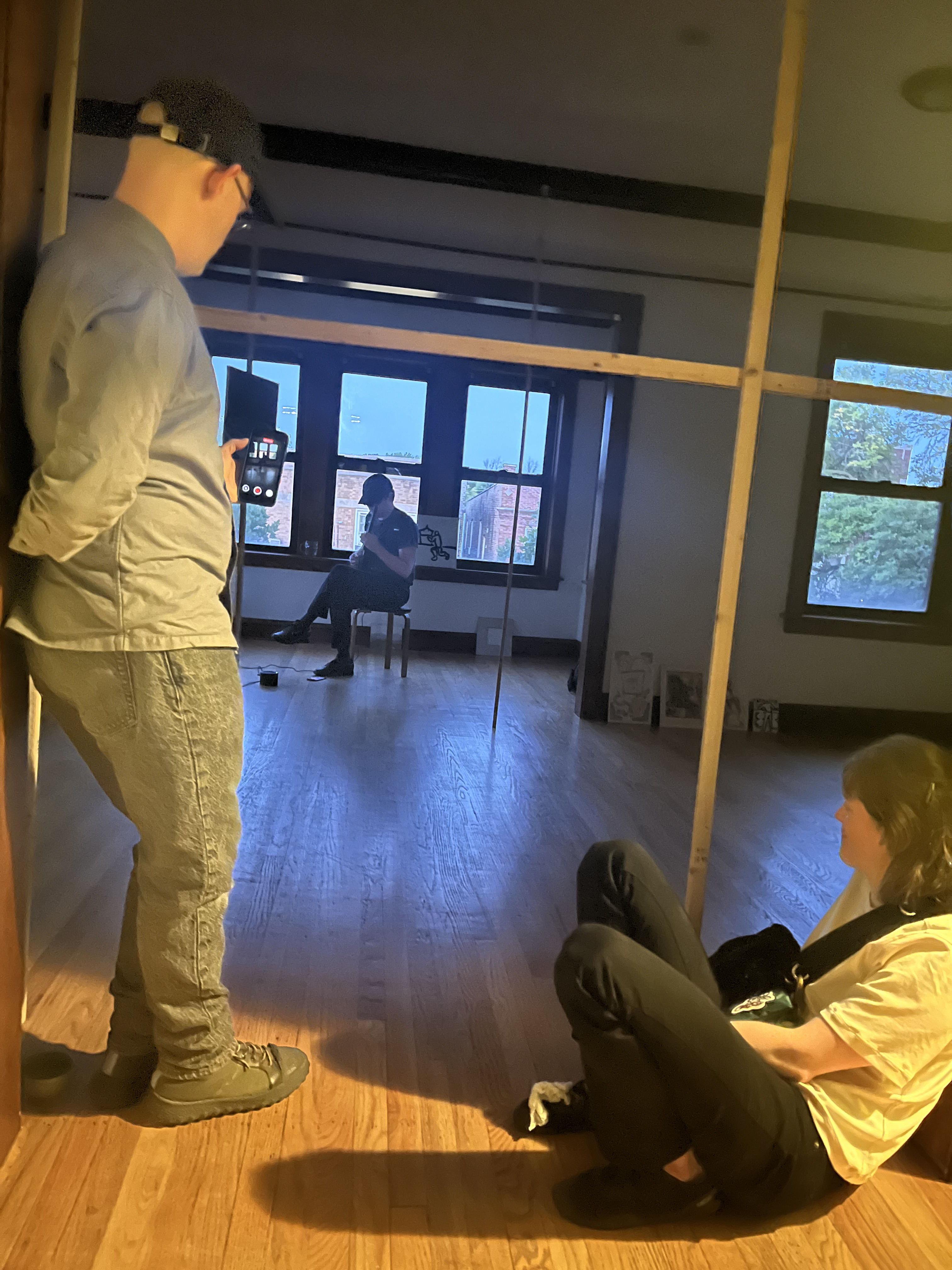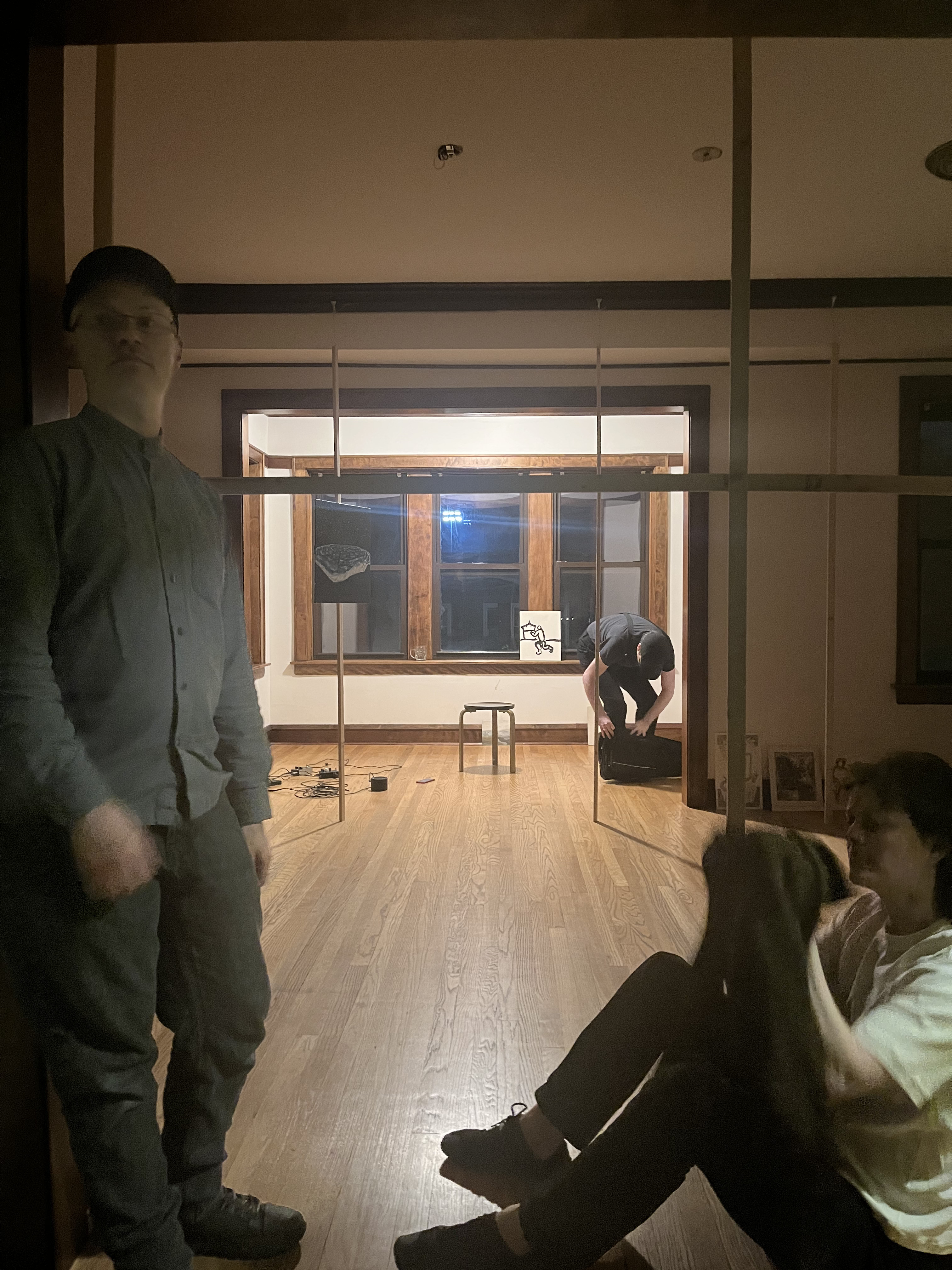 i started apartment.gallery to show my dad, who had a self-described blip of a painting career in the 80's -- he glued giant paintings to the walls of new york city -- and has since toiled in obscurity. in the 90's he would come home exhausted and go right to bed. after dinner he would get high and go downstairs to paint. once, either on his way down or having just returned, he confided in me his thoughts on painting. he said it was like leaping off a cliff, flailing, desperate, grabbing at anything and hoping it holds. he died on august 20, 2025. this show is arranged according to a sentimental hierarchy: my mom and me here, my friends there, and my dad in between.